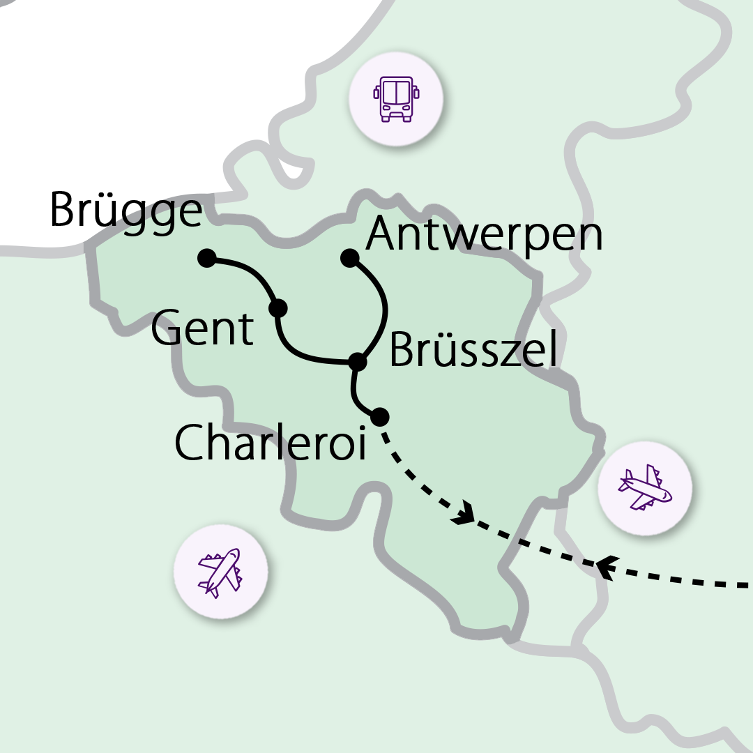 1. NAP KÖZÉPKORI VÁROSOK NYOMÁBAN: GENT ÉS BRUGGE Menetrend szerint, várhatóan a délelőtti órákban repülés Belgiumba, a Charleroi Repülőtérre. Autóbuszunkkal irány