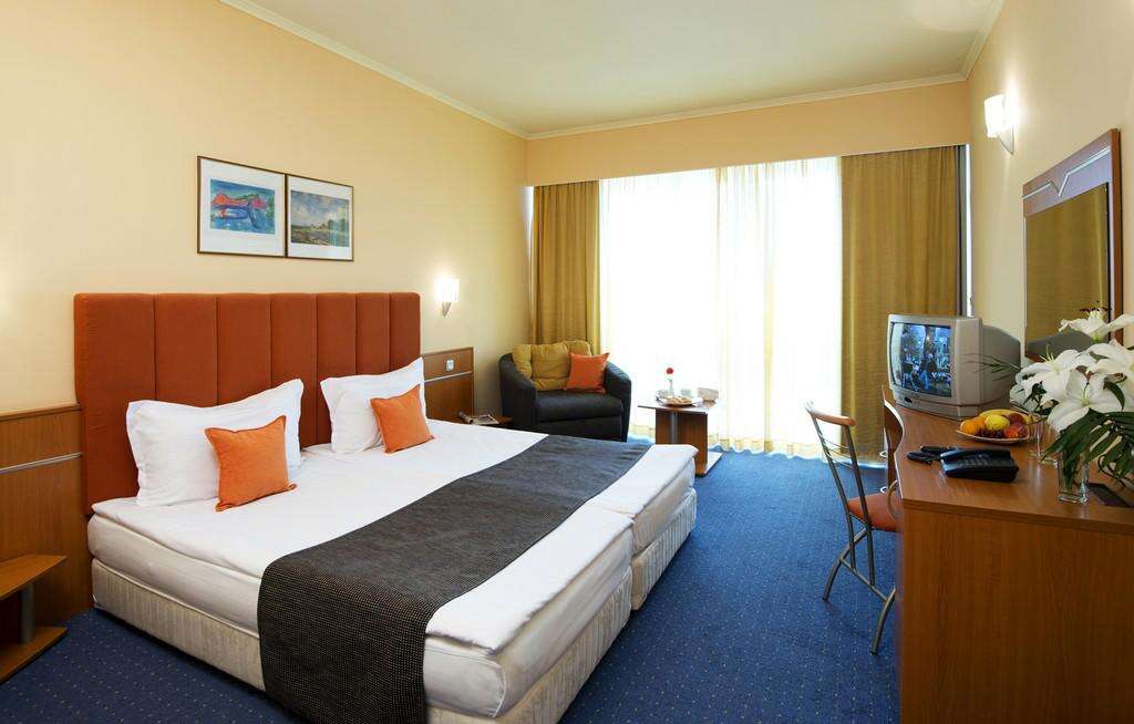 SZOBÁK: 340 szoba • erkély • központi légkondicionálás • hajszárító • TV • telefon térítés ellenében • széf térítés ellenében • hűtőszekrény • vízforraló (kérésre) • wifi • economy szobák francia erkéllyel: 24 m², max. 2+1 fő részére • standard szobák: 28 m², max. 2+2 fő részére