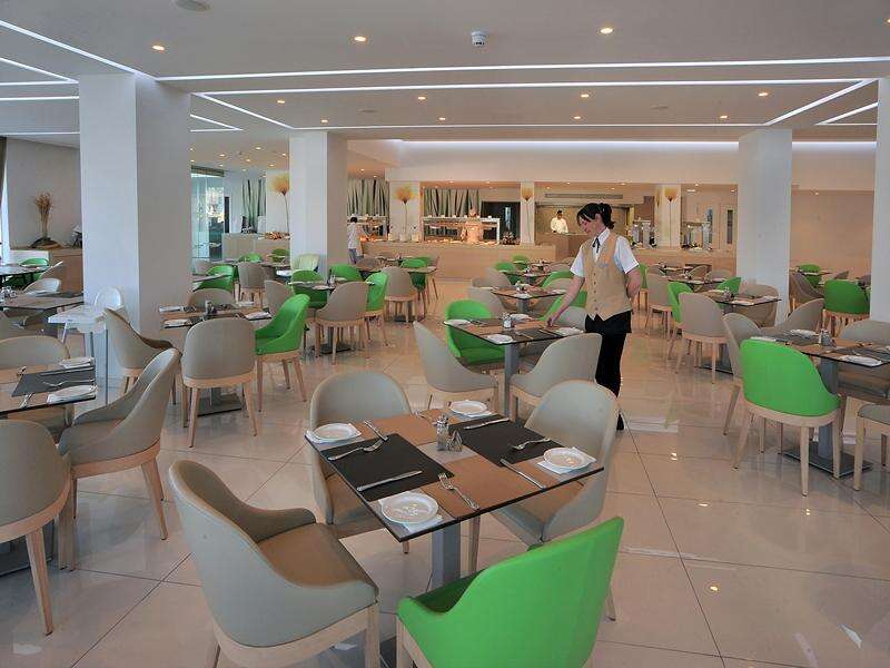 Étkezés: büfé reggeli. Felár ellenében félpanzió (büfé reggeli és vacsora) vagy all inclusive ellátás foglalható. Az étteremben helyi ciprusi és görög specialitásokat, valamint nemzetközi klasszikusokat szolgálnak fel. Az all inclusive tartalmazza: reggeli, ebéd és vacsora, napközben snackek és könnyű hideg és meleg ételek is elérhetők, valamint jégkrémek, kávé és sütemények a délutáni órákban, korlátlan italfogyasztás 10–23 óra között (helyi alkoholos és alkoholmentes italok, pohárban felszolgálva). Az italválaszték a szálloda által meghatározott az itallapokon ALL jelöléssel található. Mind a reggeli, ebéd és vacsorák során kiemelt figyelmet fordítanak az ételek minőségére, frissességére, és igyekeznek minden ételallergiát vagy diétás igényt is kielégíteni.