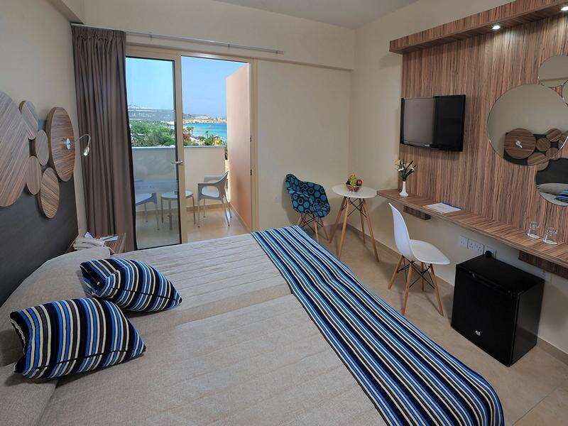 Szobák: minden standard és szuperior szoba praktikusan és kényelmesen berendezett, egy hálószobás (~18 m2), légkondicionált, fürdőszobás, hajszárítóval, síkképernyős tv-vel, vízforralóval (kávé és teafőzési lehetőség) és telefonnal felszerelt. A családi szoba (~25 m2), hasonlóan felszerelt, tágasabb lakóteret kínál több személy kényelmesen elhelyezéséhez. A szuperior családi szoba kifejezetten családok számára kialakítva, még tágasabb elrendezésűek (~30 m2), két külön hálószobával, melyet tolóajtó választ el egymástól. Minden szobához erkély tartozik utcai, medencére vagy tengerre néző kilátással. Széf és minihűtő térítés ellenében a helyszínen bérelhető.