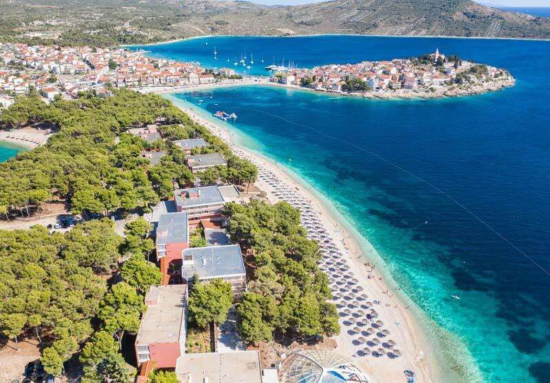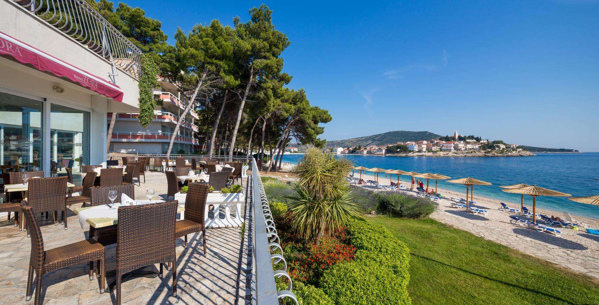 Szállás: Primosten, H.ZORA 3* Szálloda a lassan mélyülő strand mellett található.