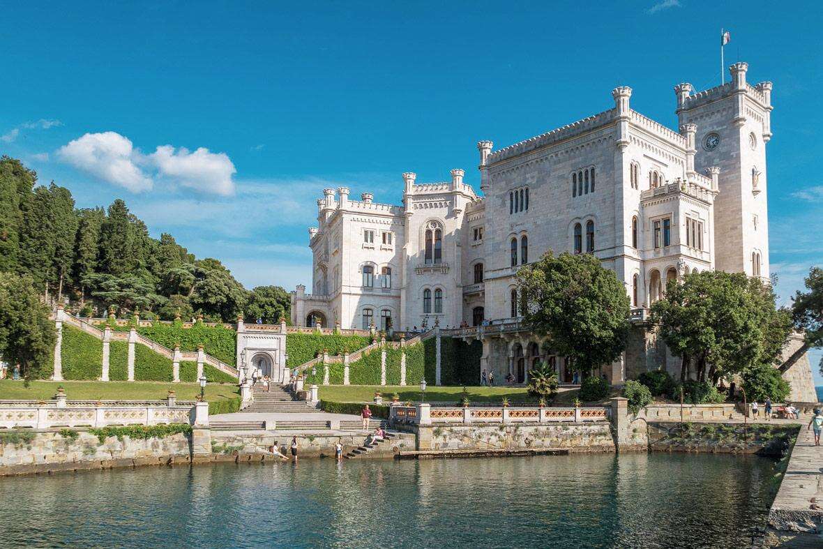 A reggeli órákban érkezünk a Trieszti-öbölbe, ahol már messziről tündököl az isztriai fehér márványból épített Miramare-kastély, melyet Habsburg Miksa és felesége Sarolta álmodott meg, miután elbűvölte a Grignano félsziget és a környező táj szépsége. Mindössze 4 év alatt elkészült az épület alsó szintje, ahová a herceg és felesége azonnal be is költözött, és a környező kert, míg a felsőbb emeletek építkezése tovább folyt.