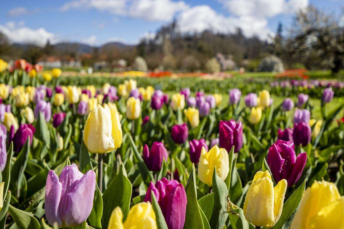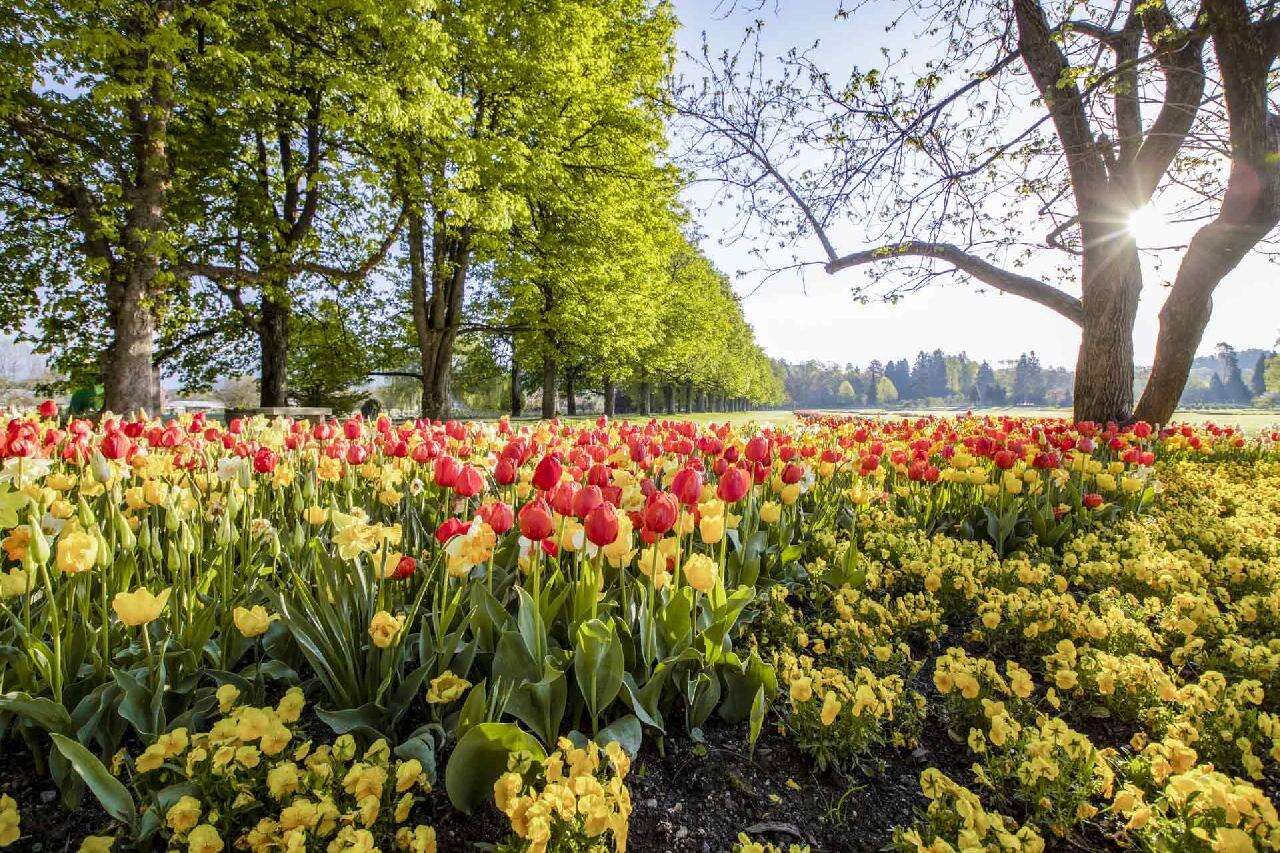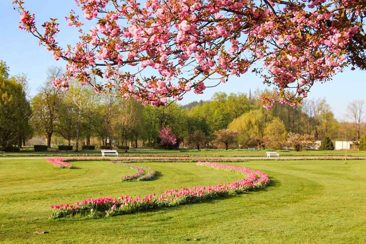 Utunk első állomása a Ljubljanától mindössze 20 km-re található Arborétum, ahol a tavaszi időszakban a híres holland Keukenhofhoz hasonlóan akár 2 millió tulipán is virágzik egyszerre. A bejárat után rögtön balra tekintve azonnal mesés látványban lesz részünk: a nyíló tulipánok mellett kanyargó ösvények, árnyékoló sátrak, üvegházak, és a távolban a gyönyörű havas hegyek, a Karavankák. A 85 hektáros területen a tulipánokon kívül 1000 rózsafajta, a télikertben kaktusz és orchideagyűjtemény majd 5000 fa várja a turistákat. Festői környezetben, patakok és tavak között, hegyekkel körbevéve sétálgathatunk a milliónyi virág között. a kicsiket játszótér is várja, de ajándékbolt, kávézó, kisvonat is hozzájárul a szórakozáshoz. Kissé távolabb szobrok, szépen nyírt gyep, formára vágott bokrok sora, és a távolban egy kis kastély… Aztán egyszer csak bálnák, majd a mozgó-morgó dinoszauruszok, különféle mesejelentek – pl. a Piroska és a farkas következik. Tovább haladva egy berendezett régi paraszt-házzal találkozhatunk, korabeli fa és vas szerszámokkal, körülötte fűszernövényes- és konyha-kertekkel.