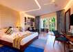 Kertre néző junior suite: a letisztult stílusú, harmonikus színekkel és elegáns bútorokkal berendezett, erkélyes, trópusi kertre néző kétágyas szobákban fürdőszoba, műholdas televízió, gardrob szekrény, egyénileg szabályozható légkondicionáló, írósztal és WIFI biztosítja a kényelmet.