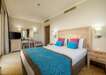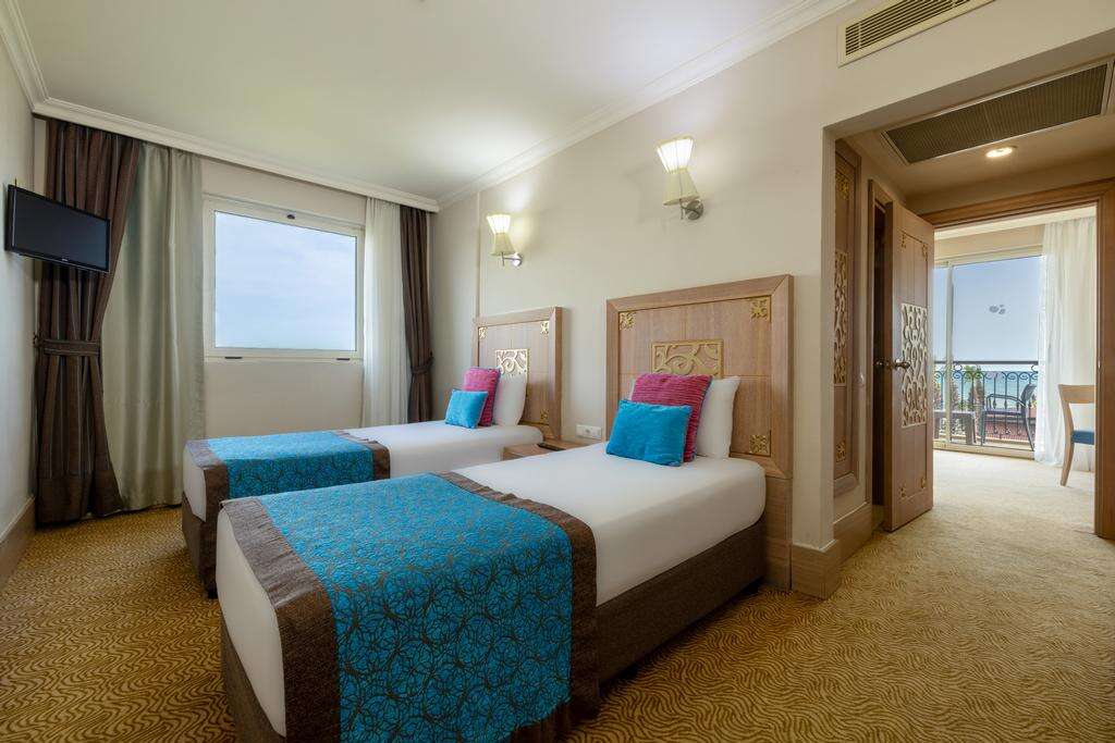 SZOBÁK: 365 szoba • erkély • központi légkondicionáló • műholdas TV zenei csatornákkal • hajszárító • telefon • elektronikus széf • minibár (naponta feltöltve alkoholmentes italokkal) • kávé- és teafőző szett • papucs • wifi • standard szobák: 27 m², max. 3 fő részére, szárazföldi kilátással vagy oldalról tengerre néző kilátással • standard szobák emeletes ággyal: 27 m², max. 2+2 fő részére, szárazföldi kilátással • családi szobák: 40 m², max. 4 fő részére, 2 hálószobával, szárazföldi kilátással vagy oldalról tengerre néző kilátással • családi szobák emeletes ággyal: 40 m², max. 3+2 fő részére, 2 hálószobával • junior lakosztályok: 58 m², max. 2 fő részére, 1 hálószoba és 1 nappali, jacuzzival